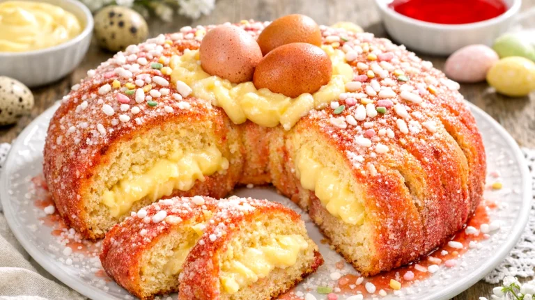 C’è qualcosa di profondamente rassicurante nell’odore di una ciambella al forno che si diffonde per casa. La ciambella di Pasqua romagnola con alchermes e crema è uno di quei dolci che portano con sé tutta la nostalgia della cucina di campagna emiliano-romagnola: semplice nell’aspetto, ricca nel carattere, con quel rosso acceso dell’alchermes che la rende immediatamente riconoscibile e festosa. Se stai cercando un dolce da preparare per il 1° maggio — una giornata che in Romagna si festeggia spesso all’aperto, in famiglia, con tavolate lunghe e abbondanti — questa è la ricetta che fa per te. Il maestro Iginio Massari, massima autorità della pasticceria italiana, ha più volte sottolineato come i grandi dolci della tradizione regionale vadano rispettati nella loro struttura, ma interpretati con tecnica: ed è esattamente questo spirito che guida ogni passaggio di questa preparazione.